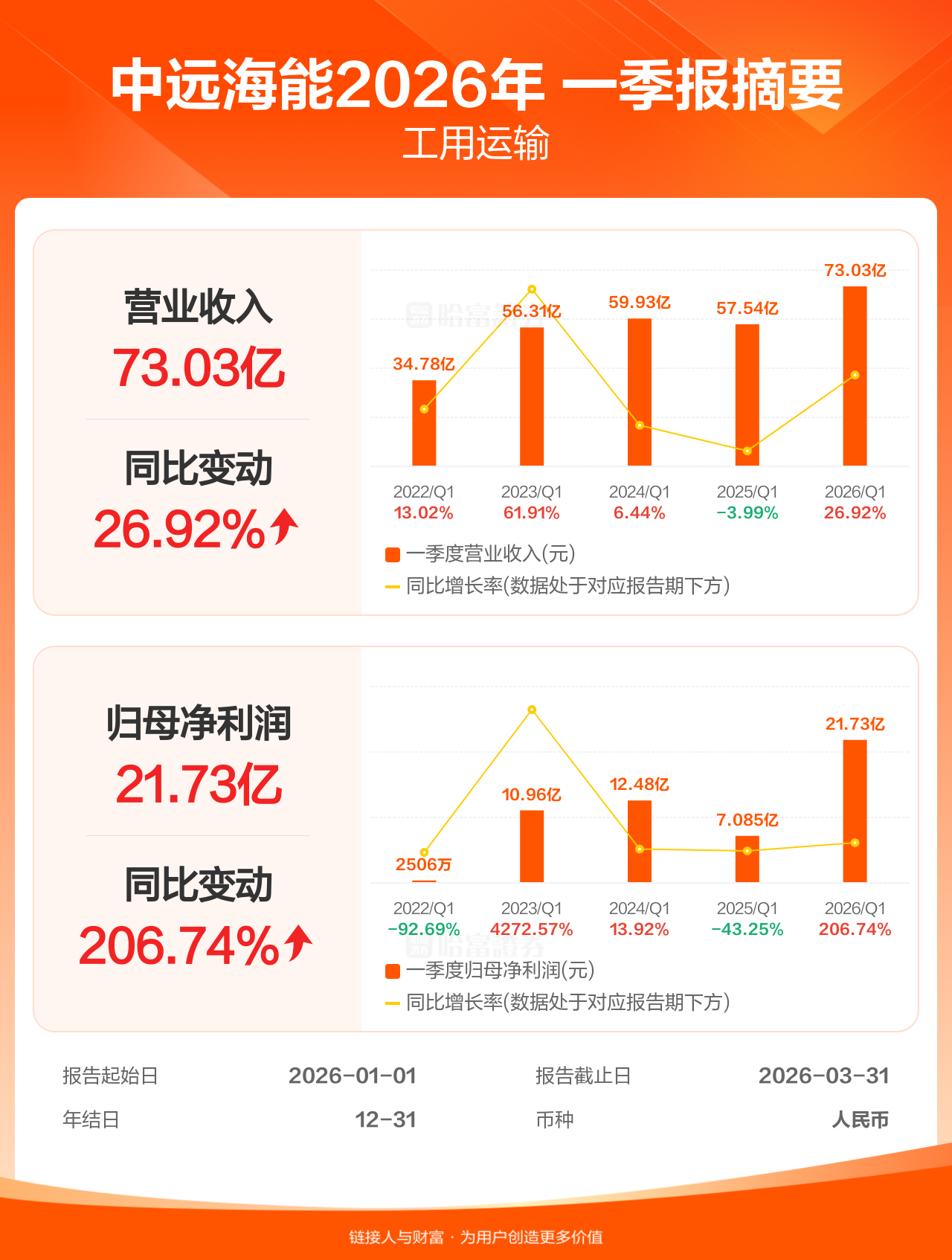 【图解财报】中远海能一季报盈利21.73亿人民币,同比增加206.74%