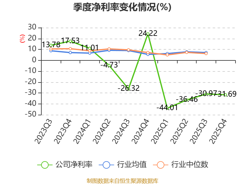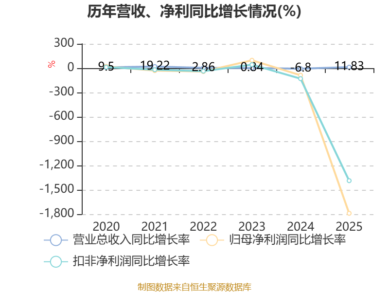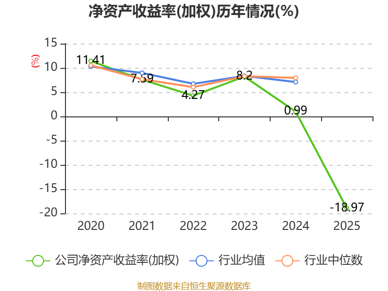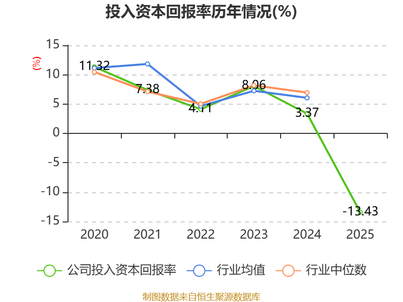 数据显示,2025年公司加权平均净资产收益率为-18.97%,较上年同期下降19.96个百分点。公司2025年投入资本回报率为-13.43%,较上年同期下降16.8个百分点。