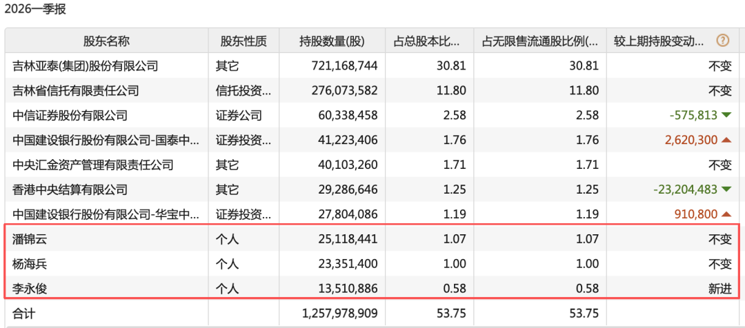 东北证券的前十大股东中,有三名是自然人股东,其中,李永俊为新进股东,持股比例为0.58%,潘锦云与杨海兵持股数量不变。
