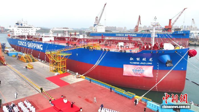 原油运输船“驭能蛟龙”轮在辽宁大连命名交付