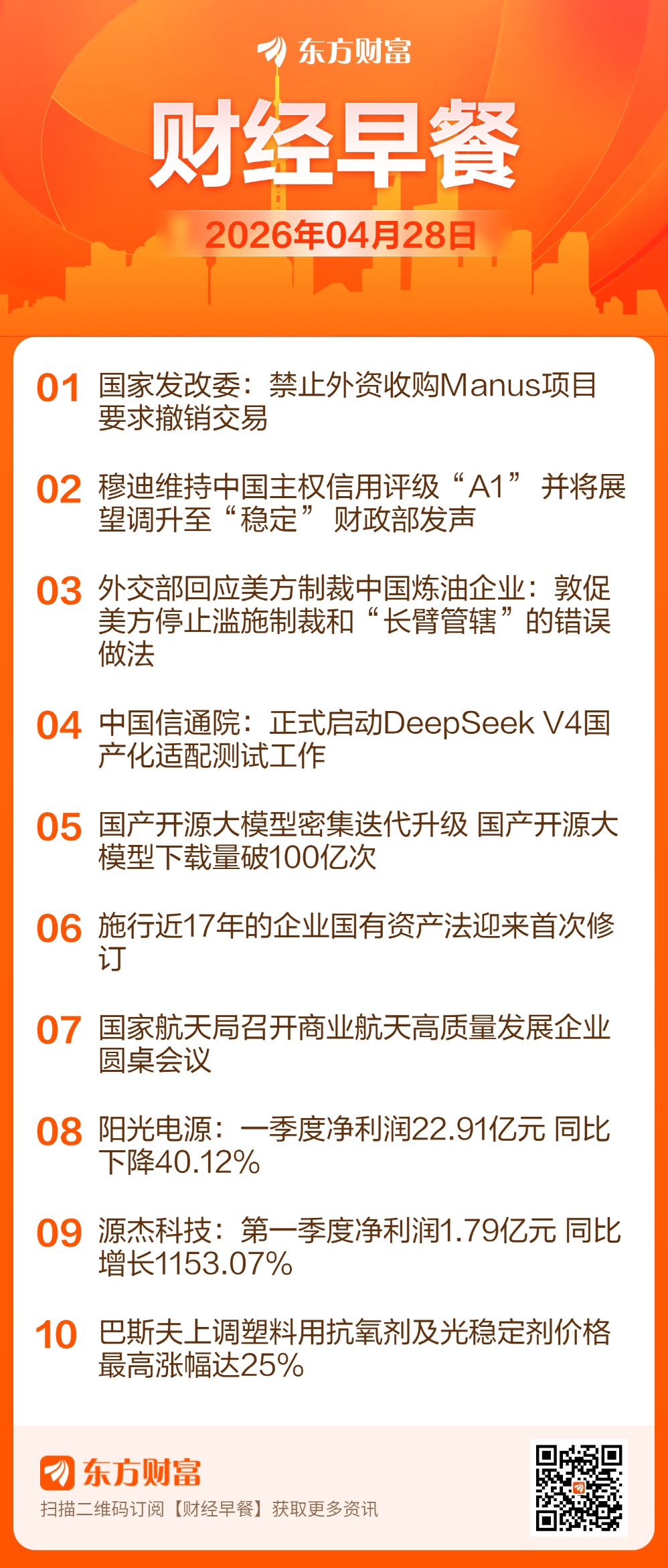 财政部有关负责同志就穆迪维持我主权信用评级并上调展望至稳定有关问题答记者问。记者问:4月27日,穆迪国际信用评级公司发布报告,决定维持中国主权信用评级“A1”,并将展望调升至“稳定”,请问财政部对此有何看法?答:对穆迪作出维持中国主权信用评级并上调展望至“稳定”的决定表示赞赏。这次评级体现了穆迪高度认可中国宏观经济和财政实力在外部冲击下展现出的强大韧性、以及中国经济高质量发展的新动能和新进展。