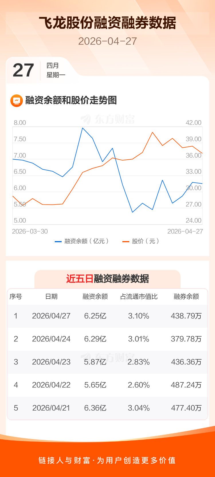交易所最新数据显示,飞龙股份于2026年4月27日获融资买入1.29亿元,融资偿还1.33亿元,当日融资净偿还350.38万元。目前,该股融资余额6.25亿,占流通市值比例为3.10%。