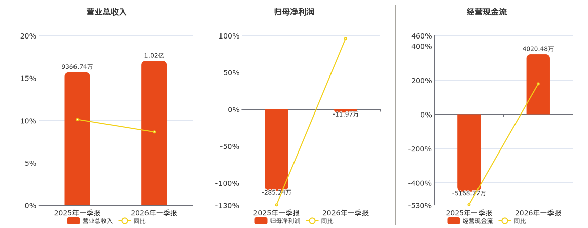 公司营业总收入为1.02亿元,在已披露的同业公司中排名第28。归母净利润为-11.97万元,在已披露的同业公司中排名第24。经营活动现金净流入为4020.48万元,在已披露的同业公司中排名第15。