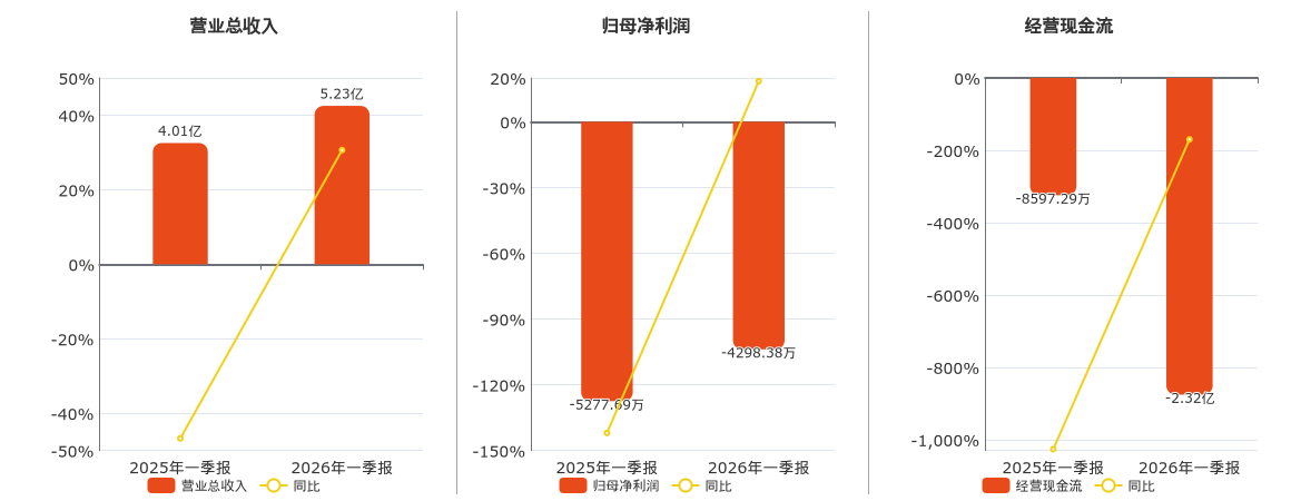 公司营业总收入为5.23亿元。归母净利润为-4298.38万元,在已披露的同业公司中排名第31。经营活动现金净流入为-2.32亿元,在已披露的同业公司中排名第33,较去年同报告期经营活动现金净流入减少1.46亿元。