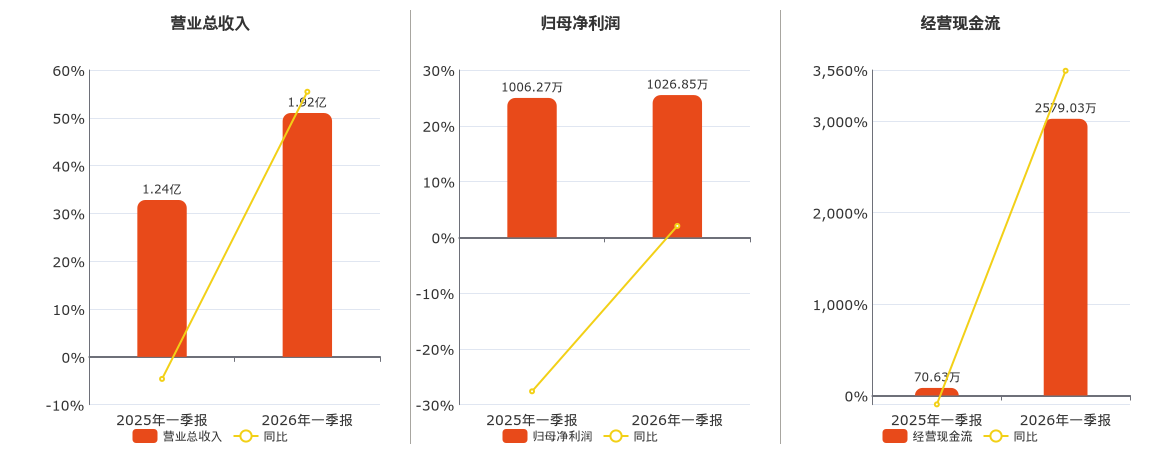 公司营业总收入为1.92亿元,在已披露的同业公司中排名第10。归母净利润为1026.85万元,在已披露的同业公司中排名第9。经营活动现金净流入为2579.03万元,在已披露的同业公司中排名第7。