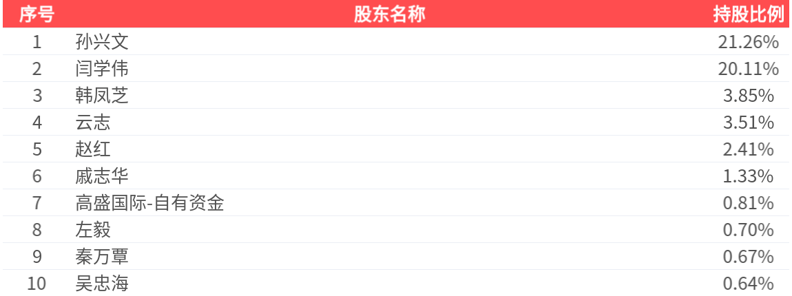 公司股东户数为1.30万户,前十大股东持股数量为7755.82万股,占总股本比例为55.28%,前十大股东持股情况如下: