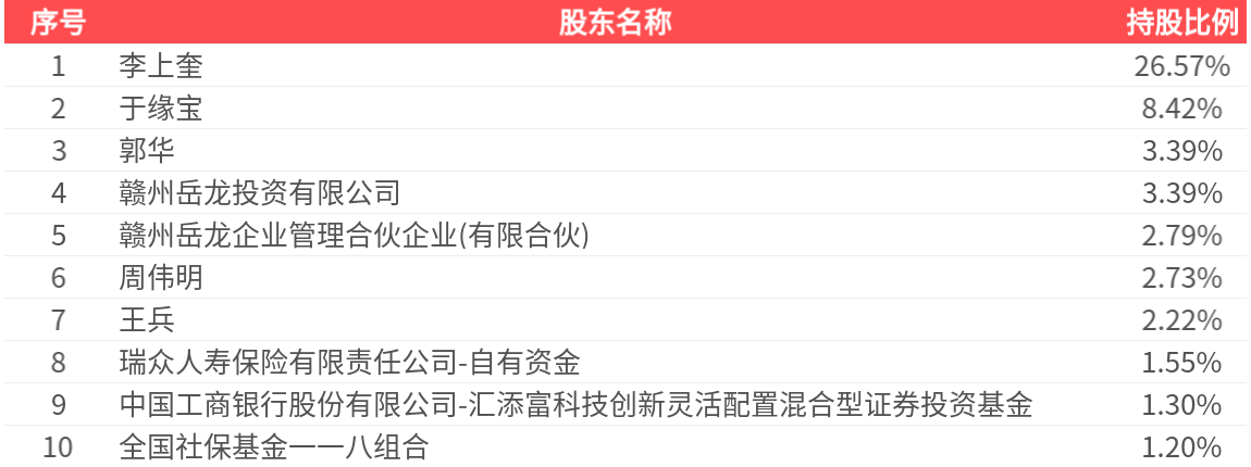 公司股东户数为6622户,前十大股东持股数量为7702.68万股,占总股本比例为53.56%,前十大股东持股情况如下: