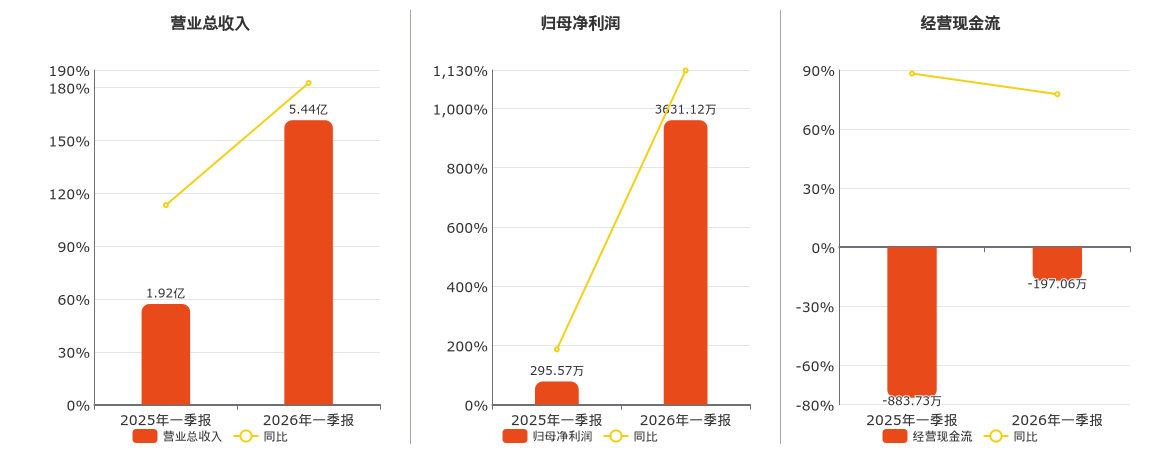公司营业总收入为5.44亿元。归母净利润为3631.12万元。经营活动现金净流入为-197.06万元。