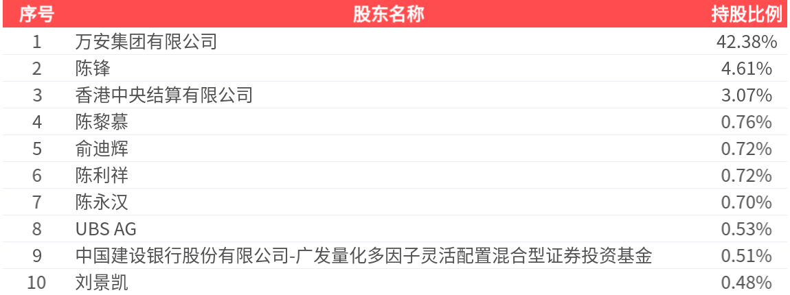 公司股东户数为3.61万户,前十大股东持股数量为2.83亿股,占总股本比例为54.47%,前十大股东持股情况如下: