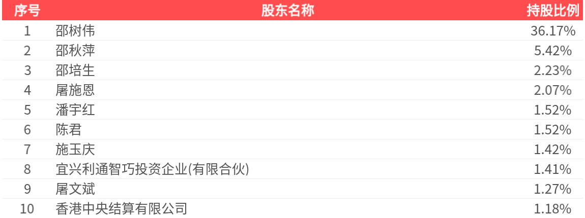 公司股东户数为5.08万户,前十大股东持股数量为1.42亿股,占总股本比例为54.22%,前十大股东持股情况如下: