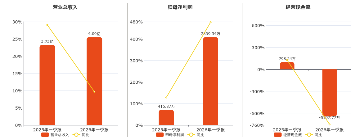 公司营业总收入为4.09亿元,在已披露的同业公司中排名第24。归母净利润为2399.34万元,在已披露的同业公司中排名第19。经营活动现金净流入为-5197.77万元,在已披露的同业公司中排名第25,较去年同报告期经营活动现金净流入减少5996.02万元,同比较去年同期下降751.15%。