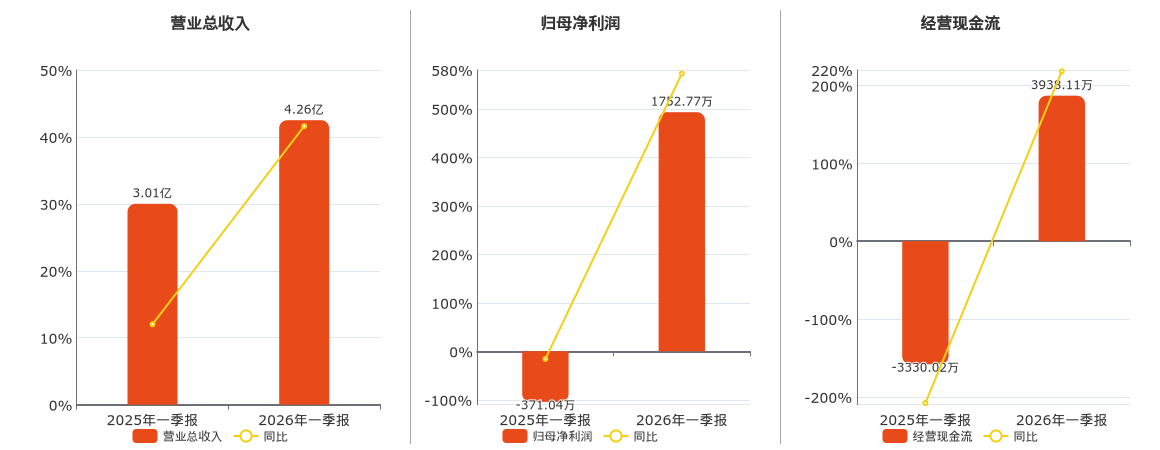 公司营业总收入为4.26亿元。归母净利润为1752.77万元,在已披露的同业公司中排名第56。经营活动现金净流入为3938.11万元。