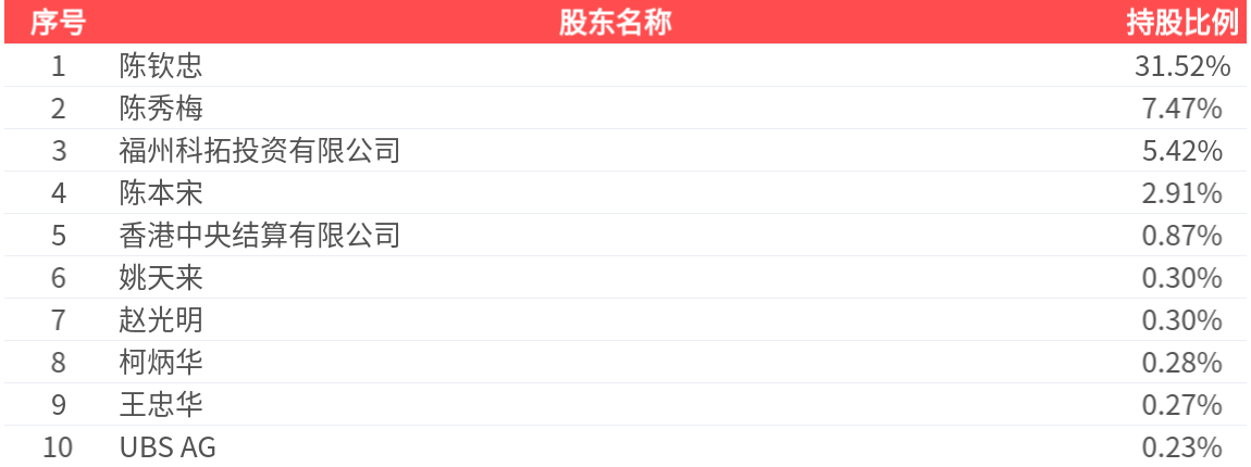 公司股东户数为3.13万户,前十大股东持股数量为7600.09万股,占总股本比例为49.58%,前十大股东持股情况如下: