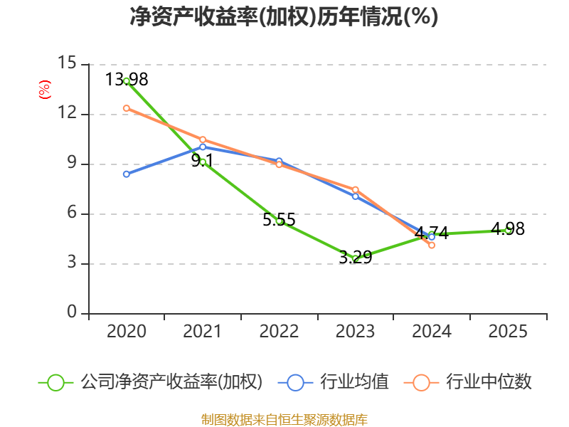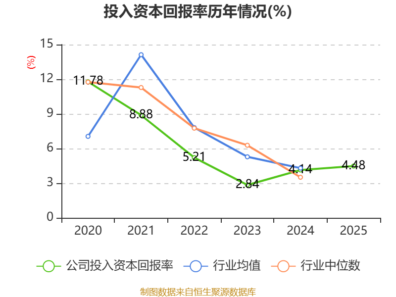 数据显示,2025年公司加权平均净资产收益率为4.98%,较上年同期上升0.24个百分点。公司2025年投入资本回报率为4.48%,较上年同期上升0.34个百分点。