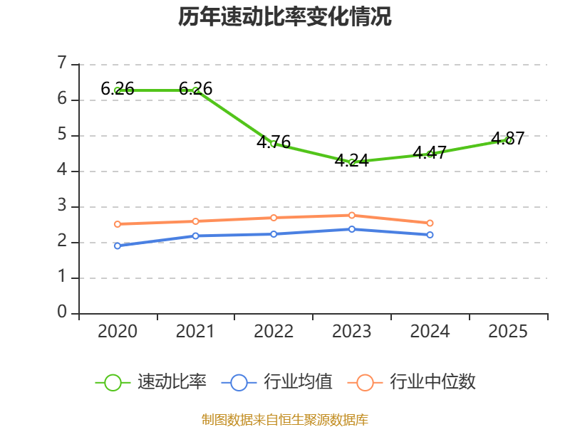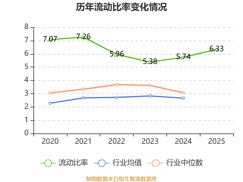 2025年,公司流动比率为6.33,速动比率为4.87。