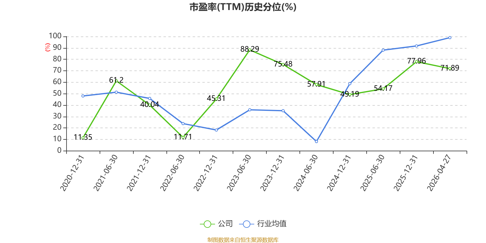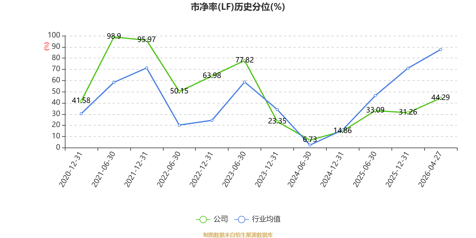 市盈率、市净率为负时,不显示当期分位数,会导致折线图中断。