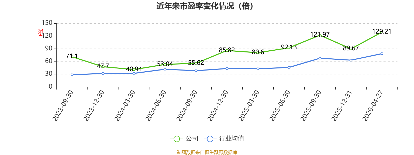 以4月27日收盘价计算,威尔高目前市盈率(TTM)约为129.21倍,市净率(LF)约5.5倍,市销率(TTM)约5.63倍。