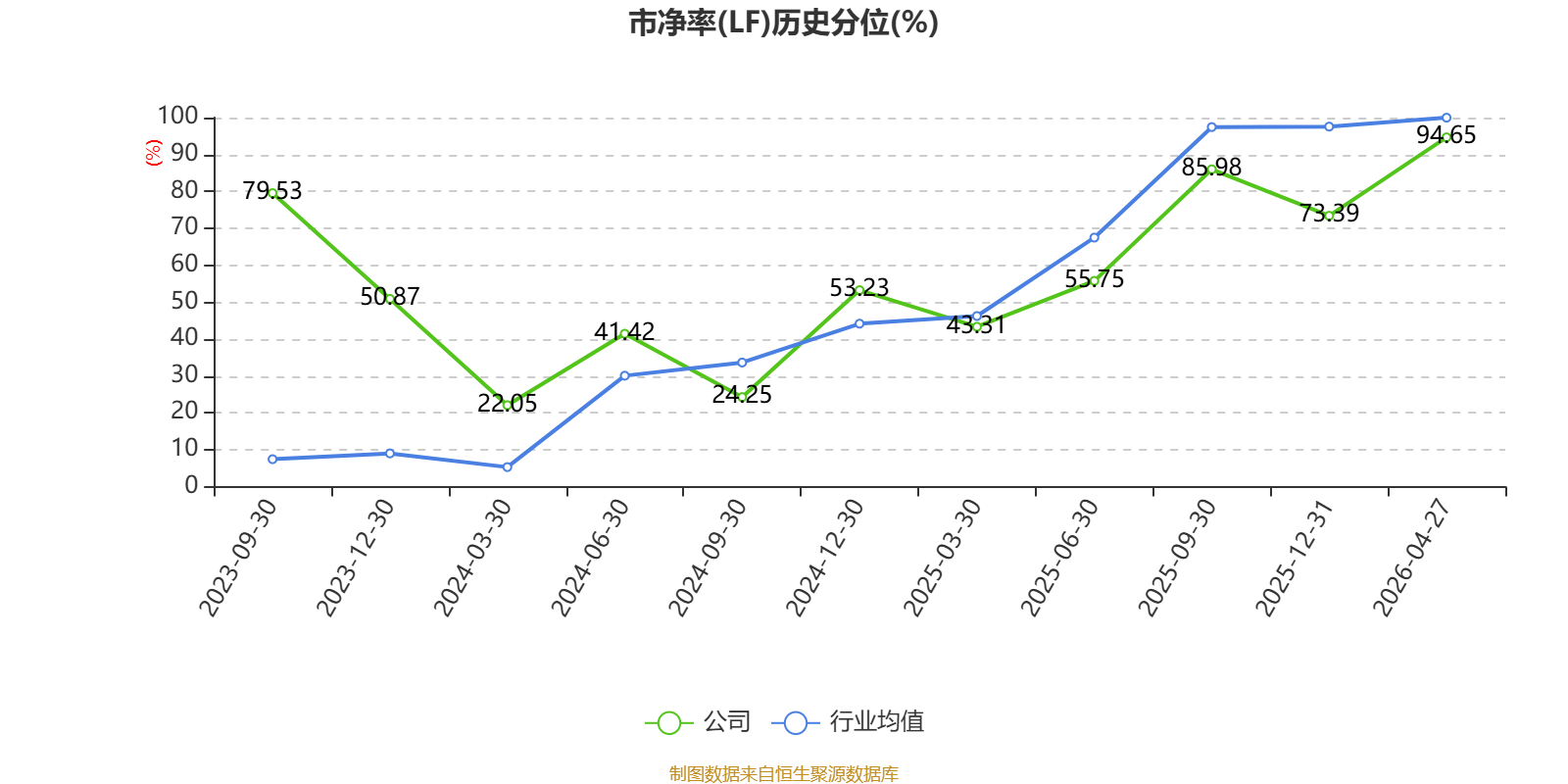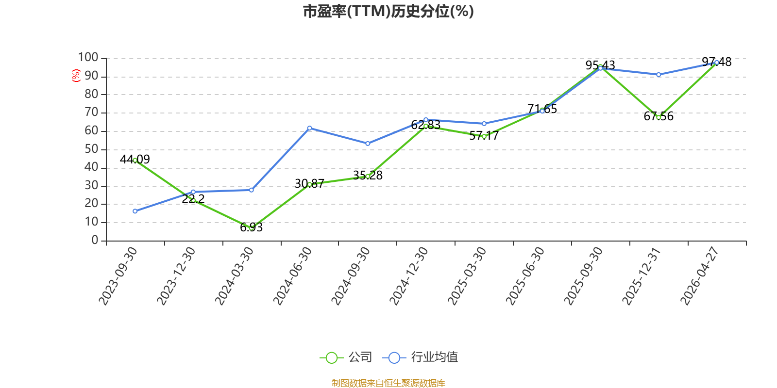 市盈率、市净率为负时,不显示当期分位数,会导致折线图中断。