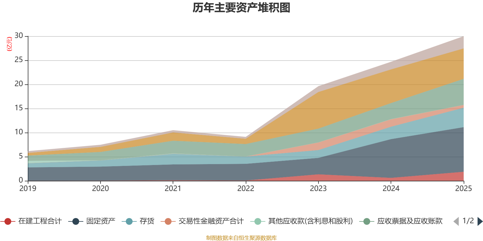 资产重大变化方面,截至2025年末,公司货币资金较上年末减少9.69%,占公司总资产比重下降7.27个百分点;应收票据及应收账款较上年末增加62.13%,占公司总资产比重上升4.52个百分点;交易性金融资产合计较上年末减少62.89%,占公司总资产比重下降4.35个百分点;在建工程合计较上年末增加211.16%,占公司总资产比重上升3.77个百分点。