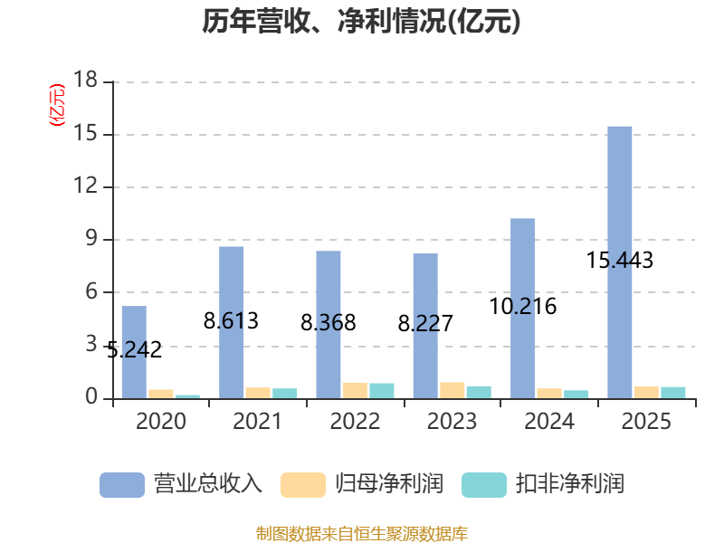 中证智能财讯威尔高(301251)4月28日披露2025年年度报告。2025年,公司实现营业总收入15.44亿元,同比增长51.16%;归母净利润6730.89万元,同比增长20.49%;扣非净利润6342.89万元,同比增长41.60%;经营活动产生的现金流量净额为-9722.11万元,上年同期为8757.73万元;报告期内,威尔高基本每股收益为0.5元,加权平均净资产收益率为4.37%。公司2025年度分配预案为:拟向全体股东每10股转4股,派现0.5元(含税)。