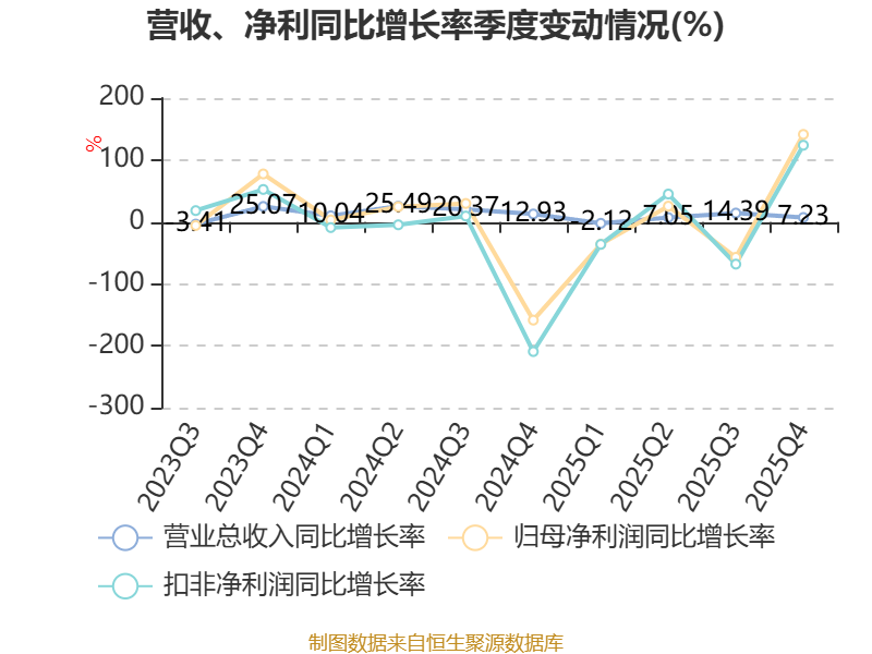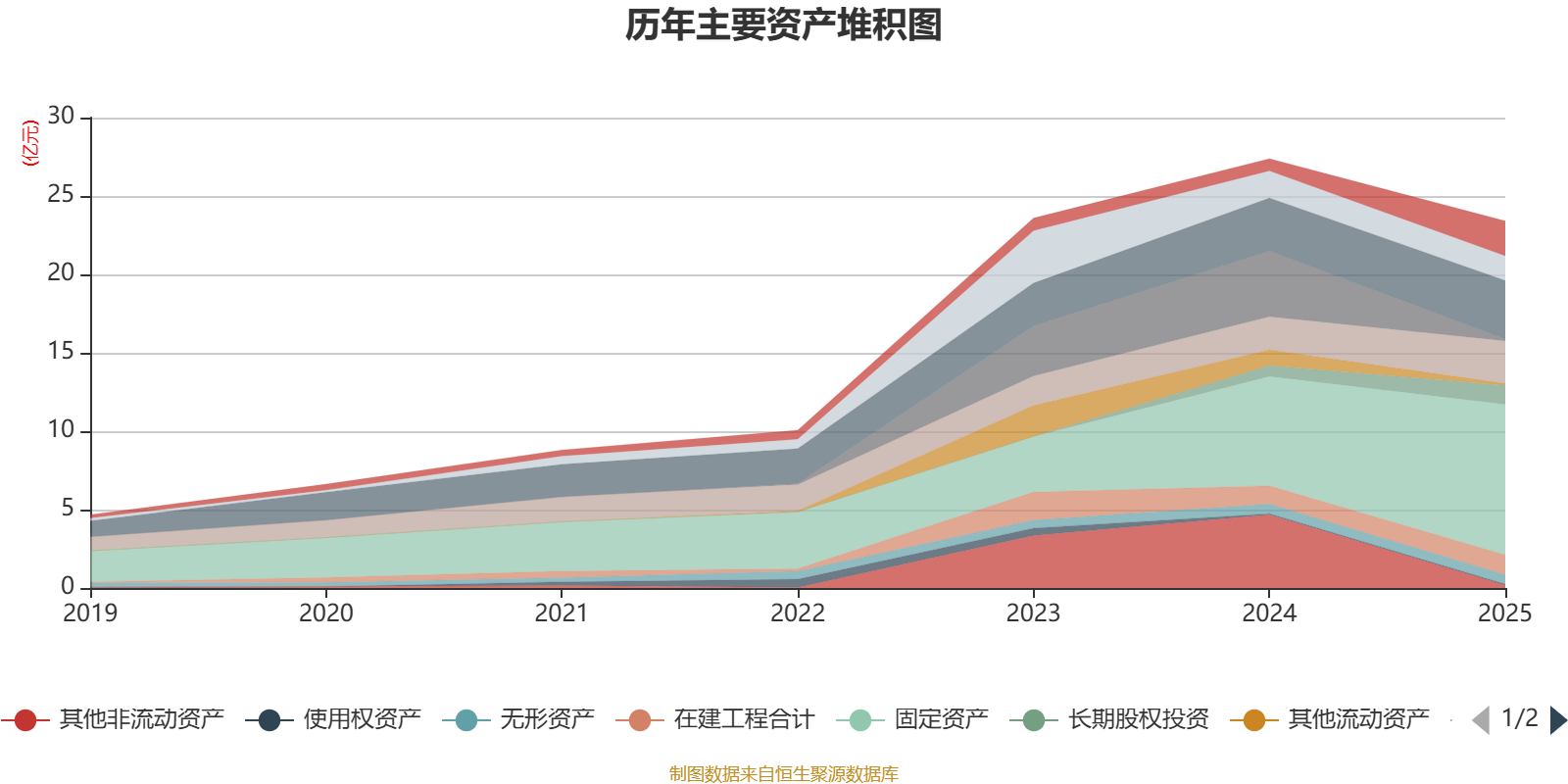 资产重大变化方面,截至2025年末,公司其他非流动资产较上年末减少96.13%,占公司总资产比重下降16.32个百分点;固定资产较上年末增加37.59%,占公司总资产比重上升15.52个百分点;交易性金融资产合计较上年末减少97.52%,占公司总资产比重下降14.83个百分点;存货较上年末增加28.75%,占公司总资产比重上升3.89个百分点。