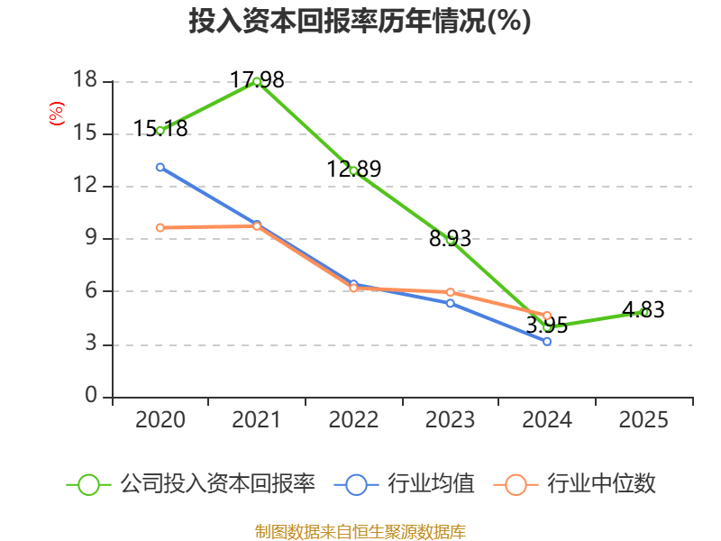 数据显示,2025年公司加权平均净资产收益率为5.76%,较上年同期上升1.14个百分点。公司2025年投入资本回报率为4.83%,较上年同期上升0.88个百分点。