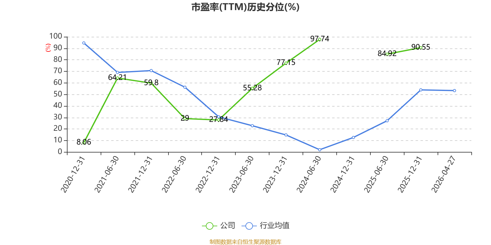 市盈率、市净率为负时,不显示当期分位数,会导致折线图中断。
