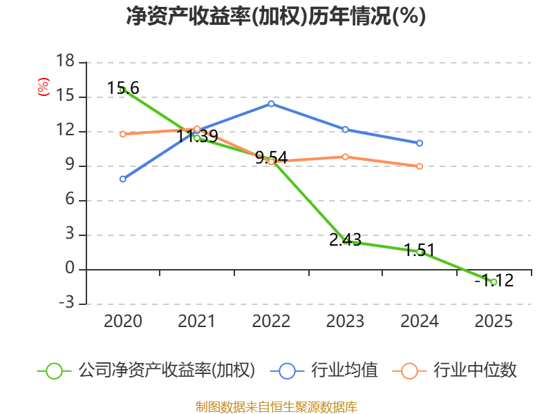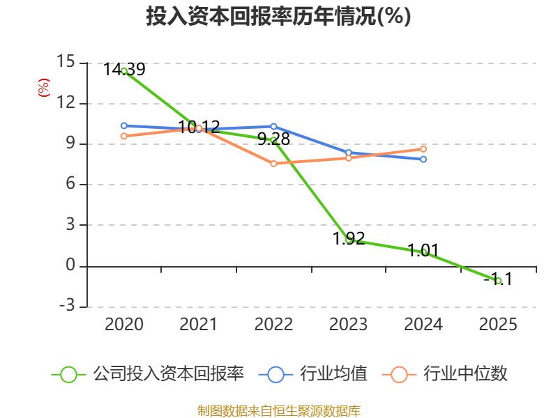 数据显示,2025年公司加权平均净资产收益率为-1.12%,较上年同期下降2.63个百分点。公司2025年投入资本回报率为-1.1%,较上年同期下降2.11个百分点。