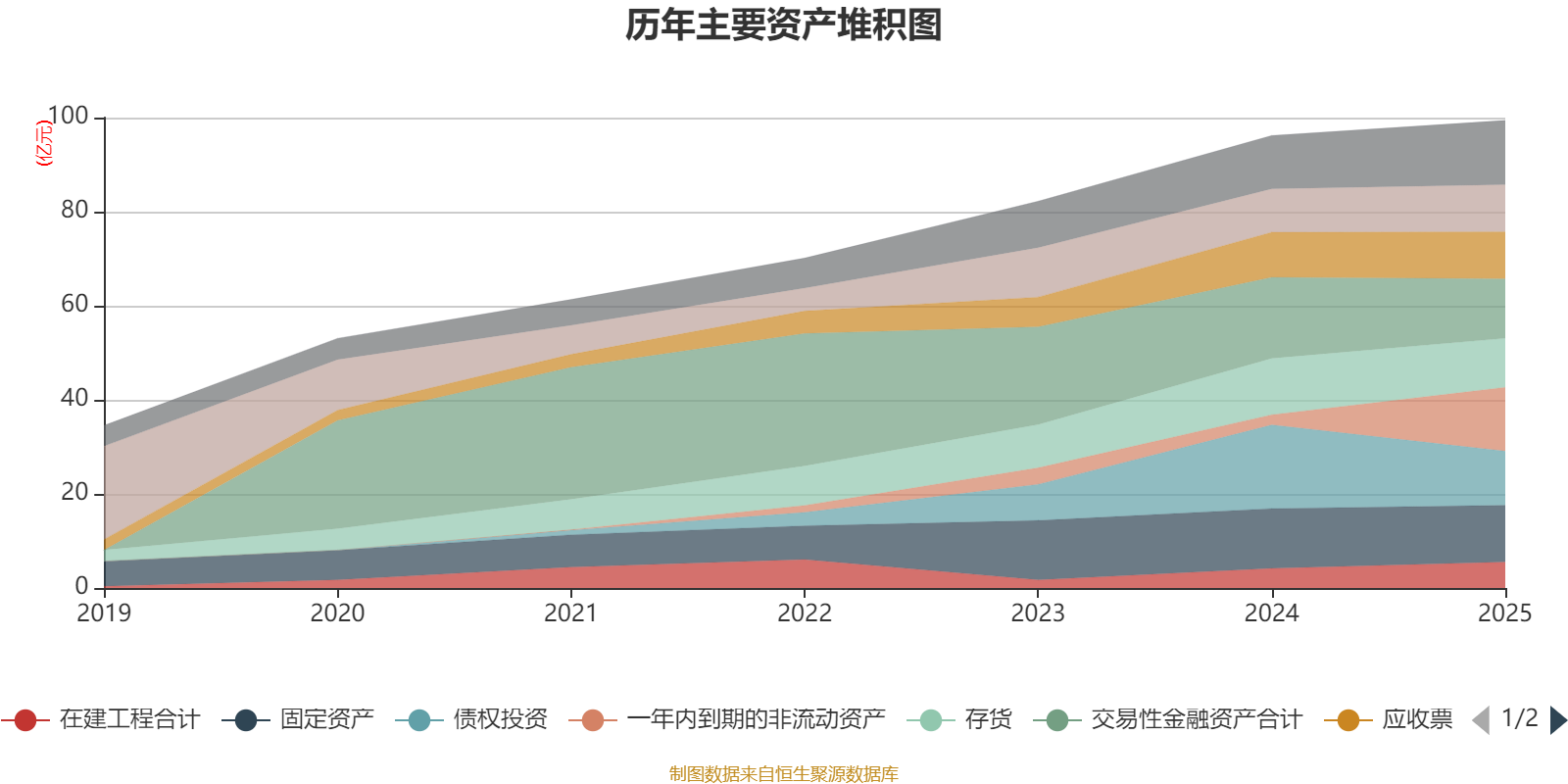资产重大变化方面,截至2025年末,公司一年内到期的非流动资产较上年末增加528.51%,占公司总资产比重上升11.41个百分点;债权投资较上年末减少35.25%,占公司总资产比重下降6.91个百分点;交易性金融资产合计较上年末减少26.5%,占公司总资产比重下降5.17个百分点;其他非流动金融资产较上年末增加434.22%,占公司总资产比重上升2.1个百分点。