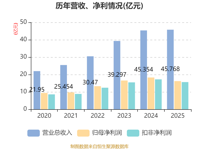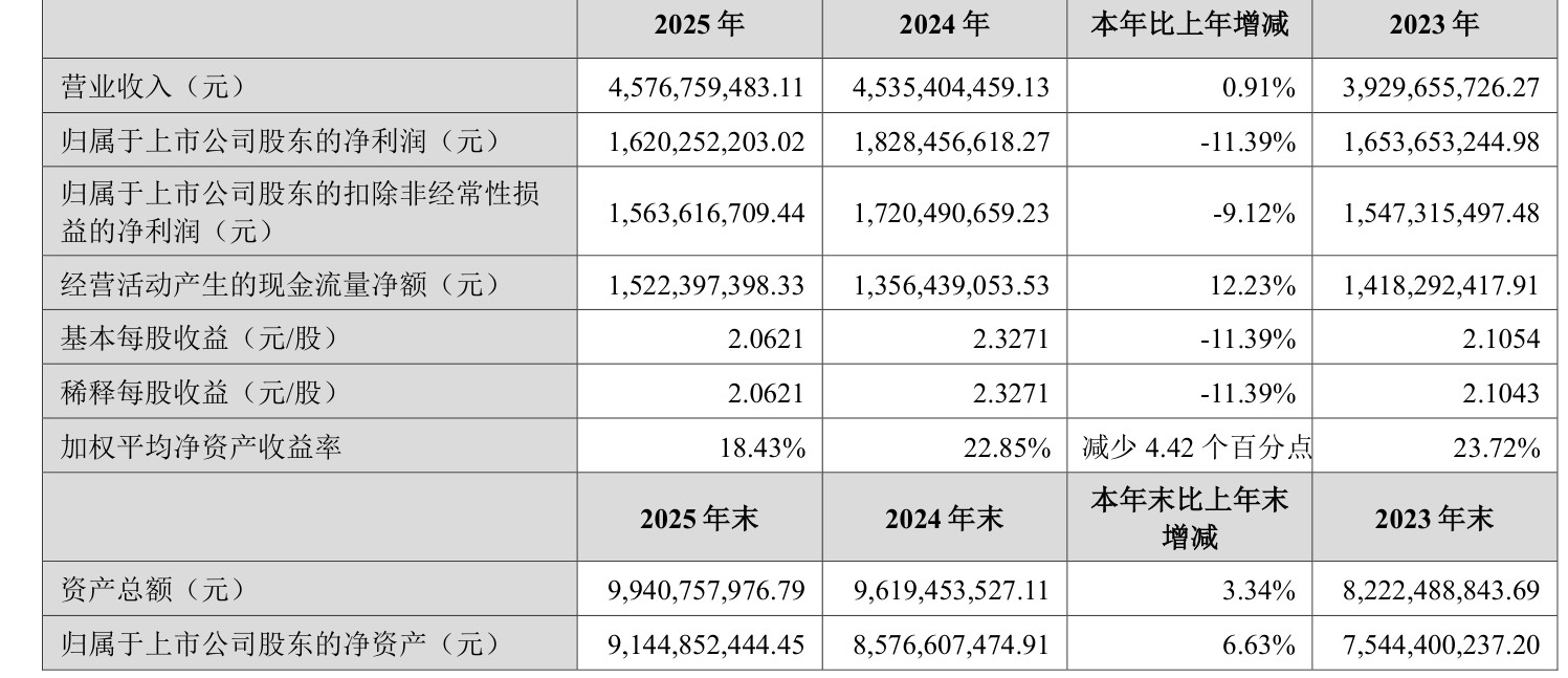 数据显示,2025年公司加权平均净资产收益率为18.43%,较上年同期下降4.42个百分点。公司2025年投入资本回报率为17.93%,较上年同期下降4.54个百分点。