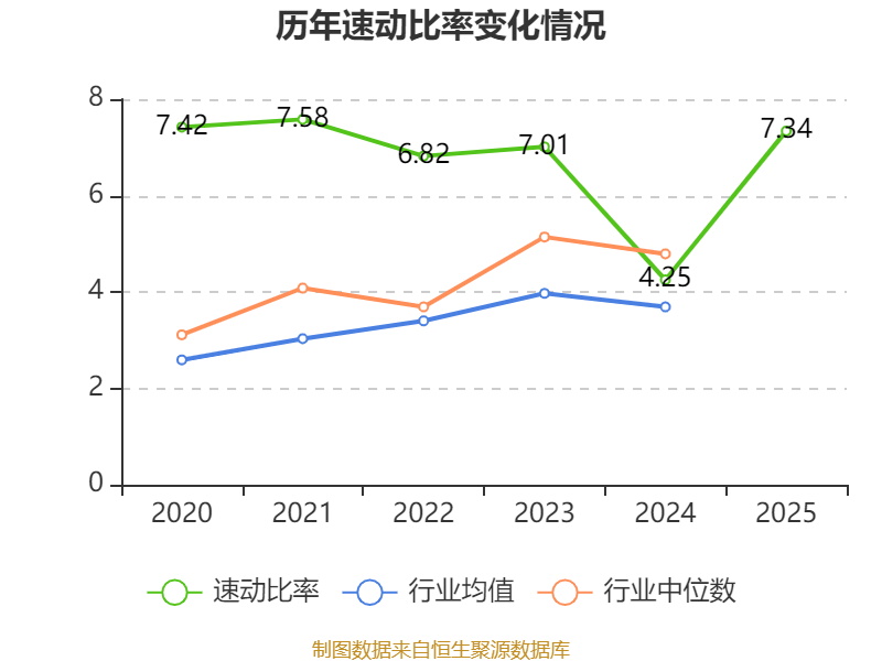 2025年,公司流动比率为8.98,速动比率为7.34。