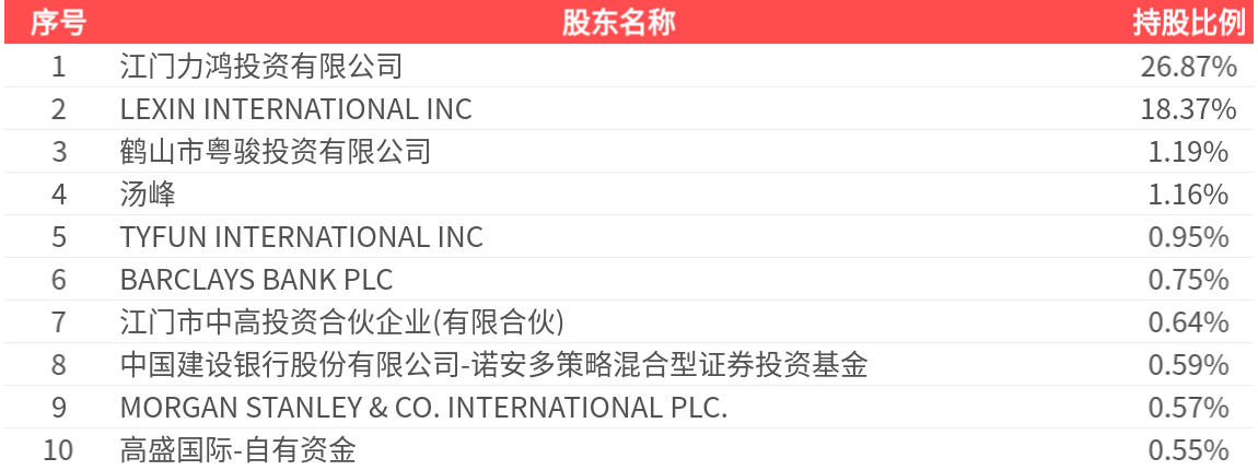 公司股东户数为1.73万户,前十大股东持股数量为2.21亿股,占总股本比例为51.65%,前十大股东持股情况如下: