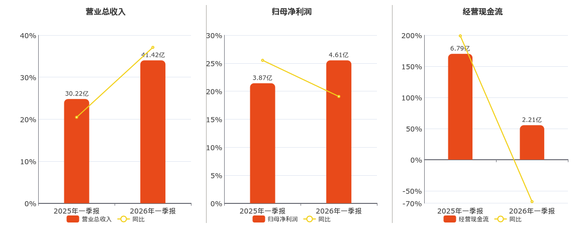 公司营业总收入为41.42亿元。归母净利润为4.61亿元。经营活动现金净流入为2.21亿元,较去年同报告期经营活动现金净流入减少4.58亿元,同比较去年同期下降67.43%。