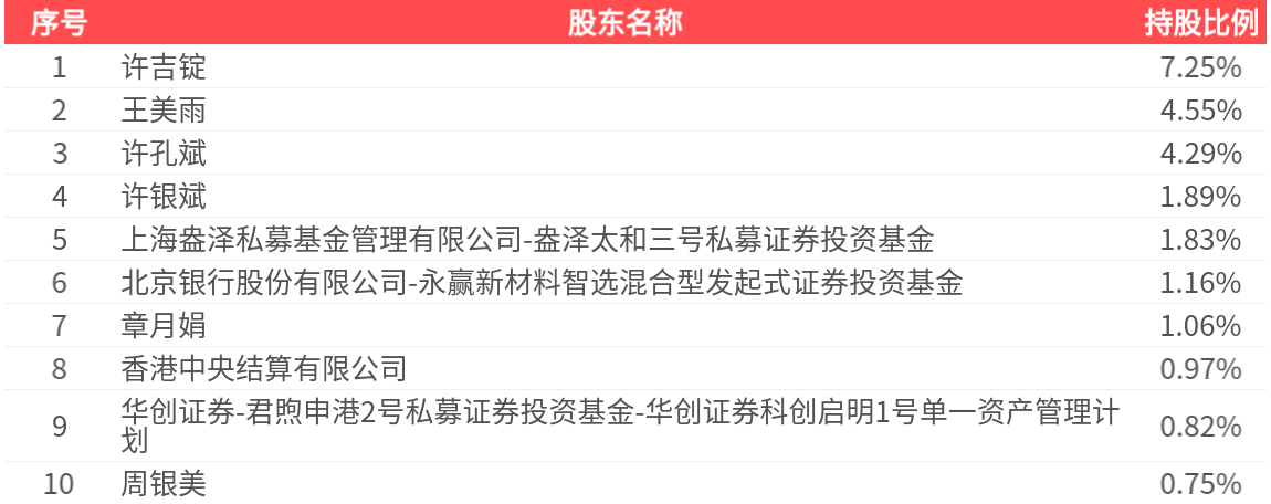 公司股东户数为2.54万户,前十大股东持股数量为3.19亿股,占总股本比例为24.57%,前十大股东持股情况如下:
