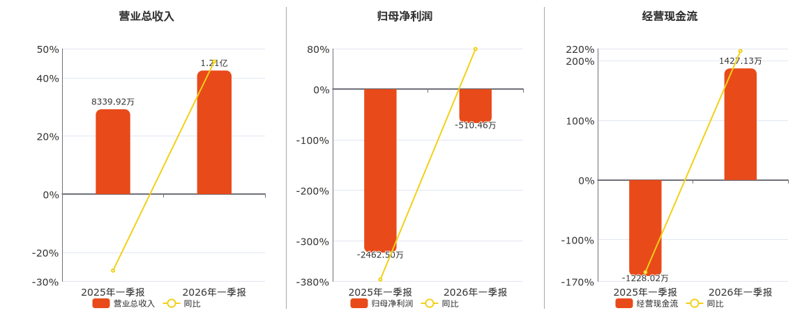 公司营业总收入为1.21亿元,在已披露的同业公司中排名第11。归母净利润为-510.46万元,在已披露的同业公司中排名第9。经营活动现金净流入为1427.13万元。