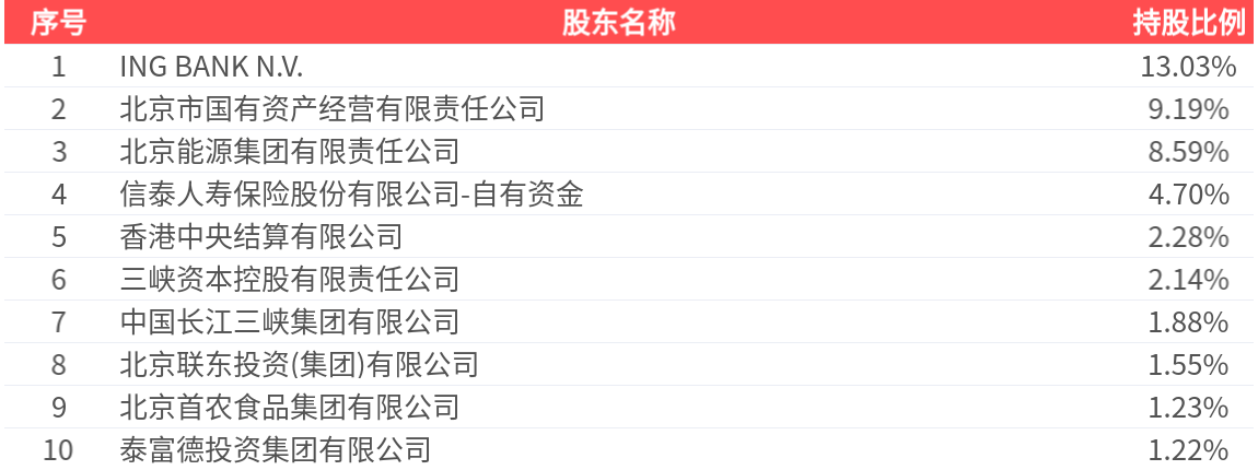 公司股东户数为22.24万户,前十大股东持股数量为96.85亿股,占总股本比例为45.81%,前十大股东持股情况如下: