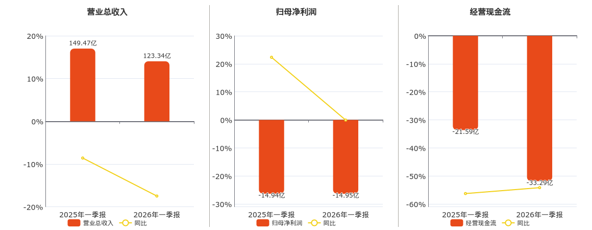天山股份(000877.SZ):2026年一季报净利润为-14.95亿元,同比亏损减少