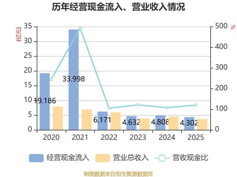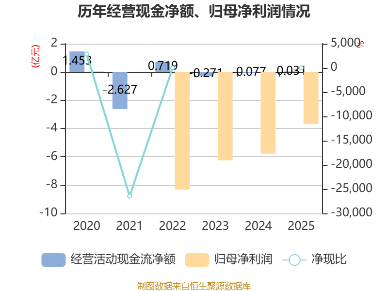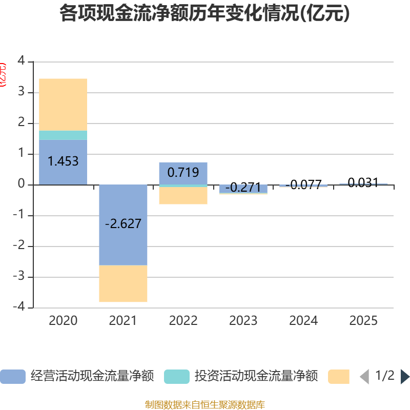 截至2025年,公司经营活动现金流净额为306.2万元,同比增加1074.82万元;筹资活动现金流净额-1元,同比增加127.79万元;投资活动现金流净额-30.06万元,上年同期为-4.52万元。
