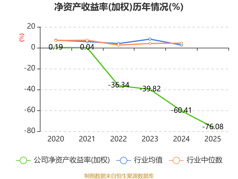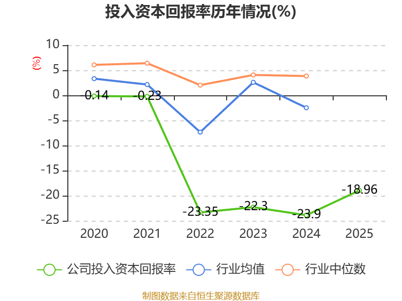 数据显示,2025年公司加权平均净资产收益率为-76.08%,较上年同期下降15.67个百分点。公司2025年投入资本回报率为-18.96%,较上年同期上升4.94个百分点。