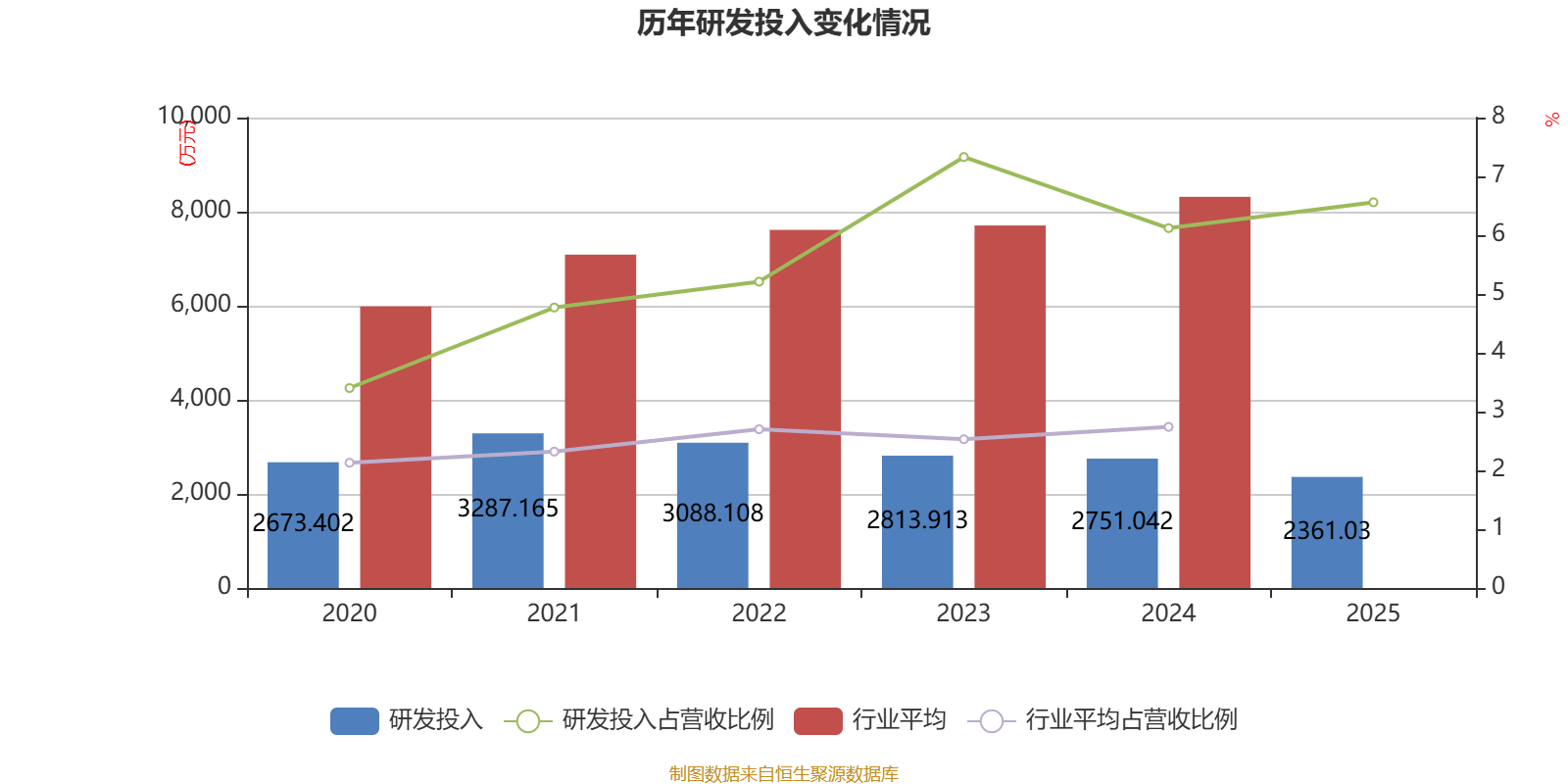 2025年全年,公司研发投入金额为2361.03万元,同比下降14.18%;研发投入占营业收入比例为6.56%,相比上年同期上升0.44个百分点。此外,公司全年研发投入资本化率为0%。