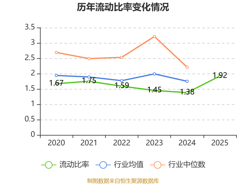 2025年,公司流动比率为1.92,速动比率为1.63。