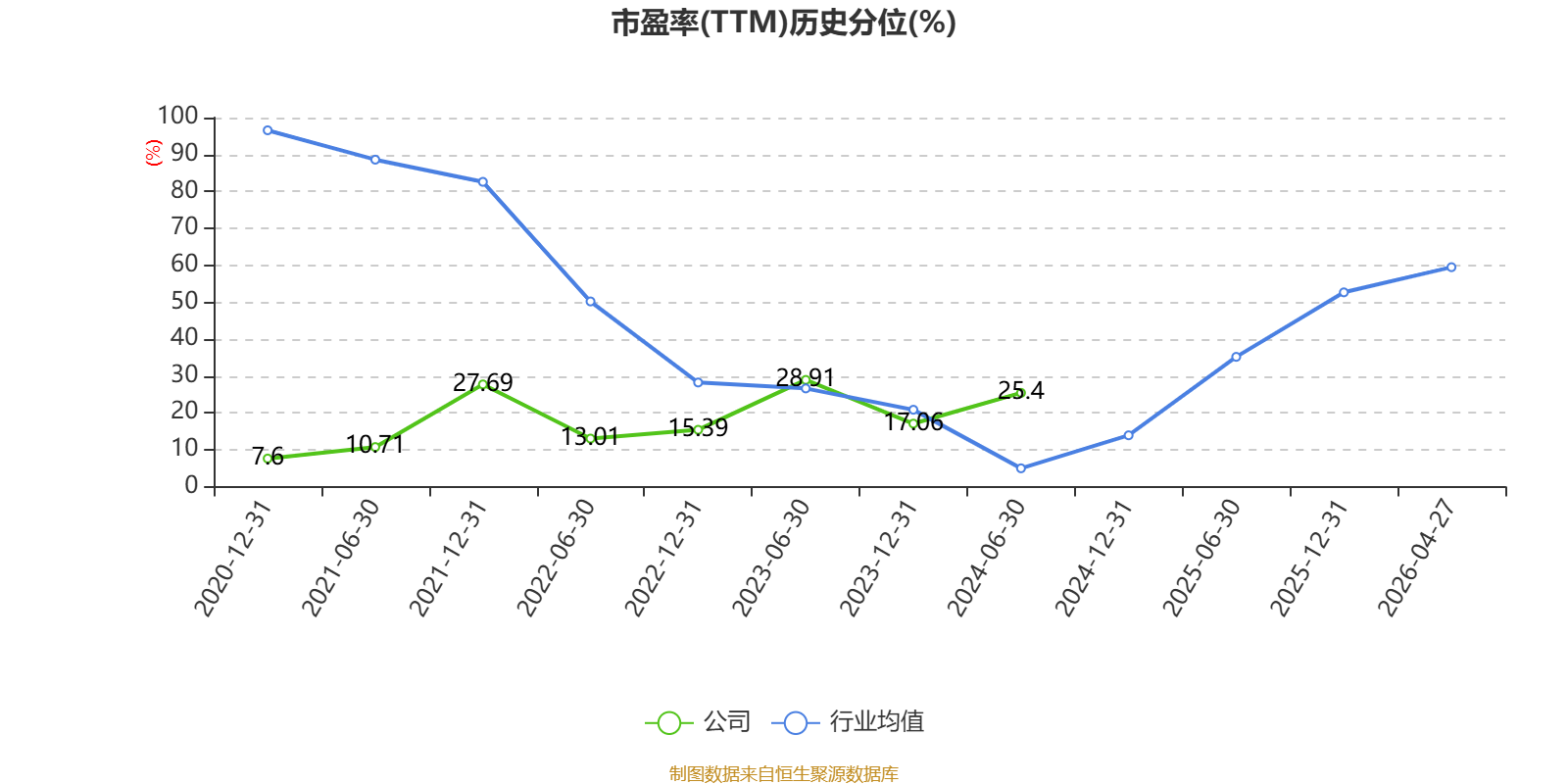 市盈率、市净率为负时,不显示当期分位数,会导致折线图中断。
