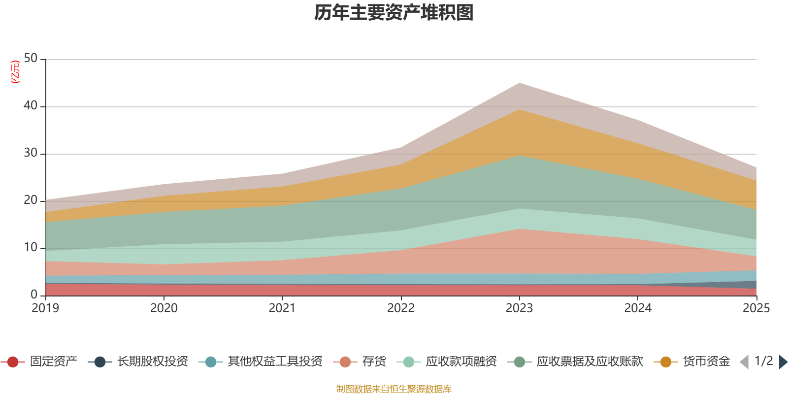 资产重大变化方面,截至2025年末,公司存货较上年末减少59.51%,占公司总资产比重下降8.78个百分点;长期股权投资较上年末增加564.71%,占公司总资产比重上升5.38个百分点;货币资金较上年末减少17.24%,占公司总资产比重上升2.73个百分点;其他权益工具投资较上年末增加2.38%,占公司总资产比重上升2.39个百分点。
