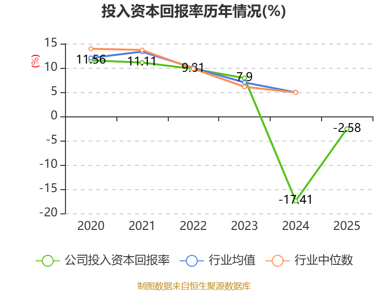 数据显示,2025年公司加权平均净资产收益率为-7.45%,较上年同期上升10.18个百分点。公司2025年投入资本回报率为-2.58%,较上年同期上升14.83个百分点。