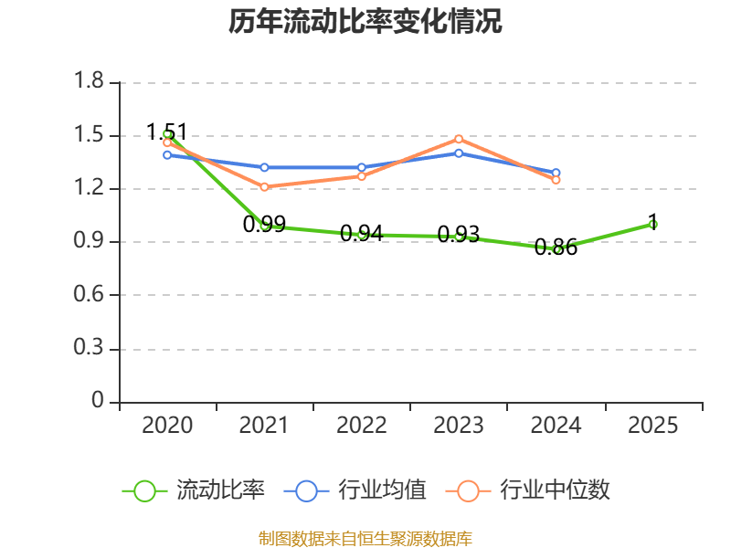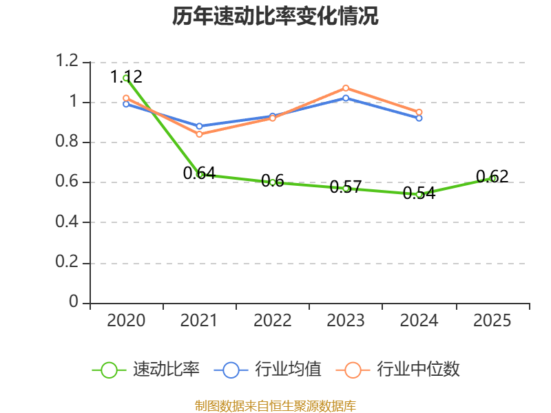 2025年,公司流动比率为1,速动比率为0.62。