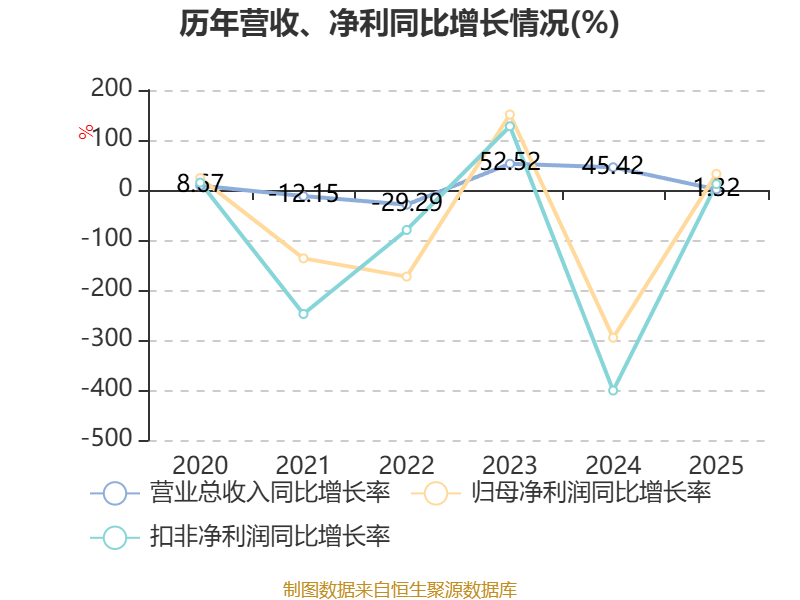 数据显示,2025年公司加权平均净资产收益率为-5.47%,较上年同期上升2.01个百分点。公司2025年投入资本回报率为-2.12%,较上年同期上升1.54个百分点。