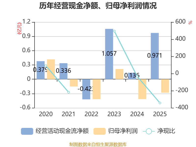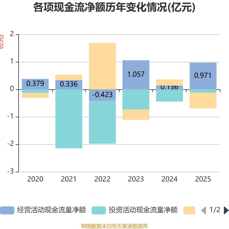 截至2025年,公司经营活动现金流净额为9709.92万元,同比增长614.12%;筹资活动现金流净额-5728.38万元,同比减少7958.65万元;投资活动现金流净额-1207.69万元,上年同期为-4453.07万元。