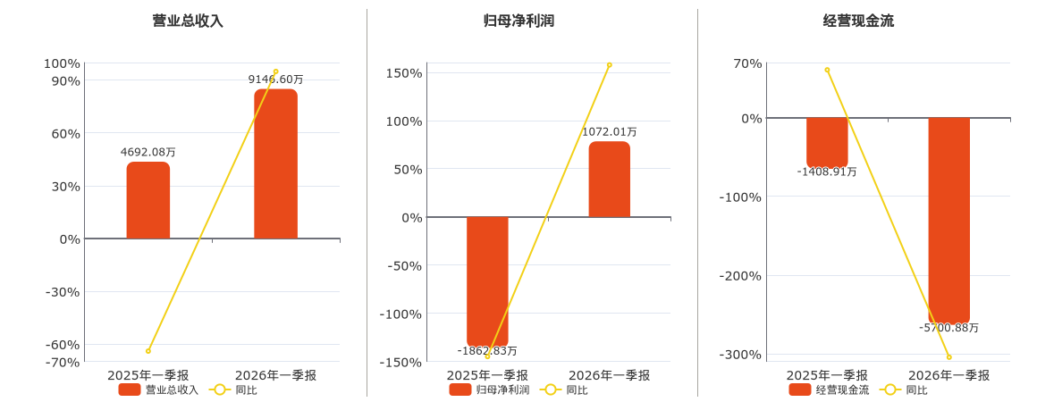 公司营业总收入为9146.60万元,在已披露的同业公司中排名第26。归母净利润为1072.01万元。经营活动现金净流入为-5700.88万元,在已披露的同业公司中排名第29,较去年同报告期经营活动现金净流入减少4291.97万元。