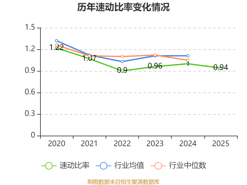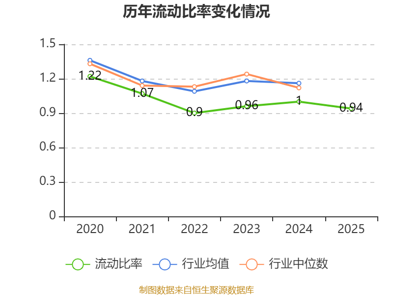 2025年,公司流动比率为0.94,速动比率为0.94。