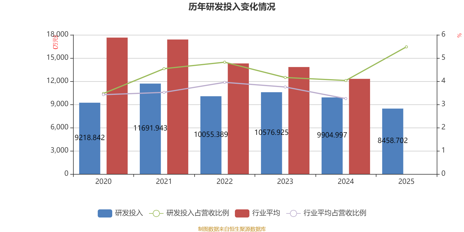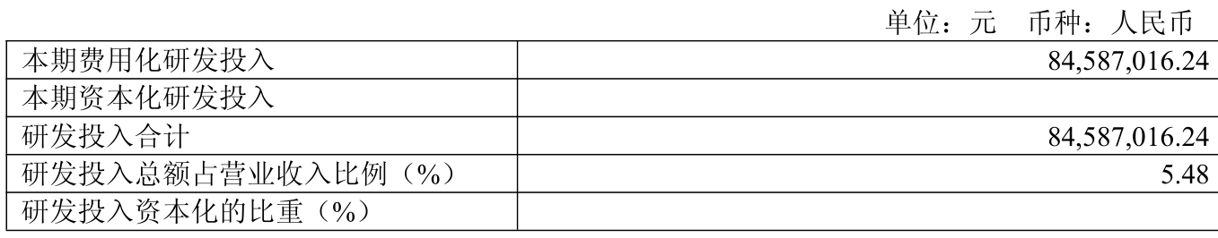 2025年全年,公司研发投入金额为8458.7万元,同比下降14.6%;研发投入占营业收入比例为5.48%,相比上年同期上升1.45个百分点。